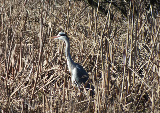 I then headed up to the main hide and met Alan J on the way. Alan did a few counts but I cant remember what they were but we did spot a couple of Gadwall, a female Tufted which I had forgotten to mention earlier, a Kingfisher on a fly through which was another patch first for the year and a Kestrel which did a bit of "hovering" but then departed. By this time I was beginning to feel the chill so god knows what Alan's infamous "Blue Hands" were like so we headed off for a walk round the public end. We spent 30 mins there but didn't see a lot as we were too busy dodging dogs or dog owners joining us for a chat (at least there dogs were under control). We saw a Grey Heron then once again I had to inform Alan that we had seen 3 earlier in the day (NOTE - Dont forget Book) .